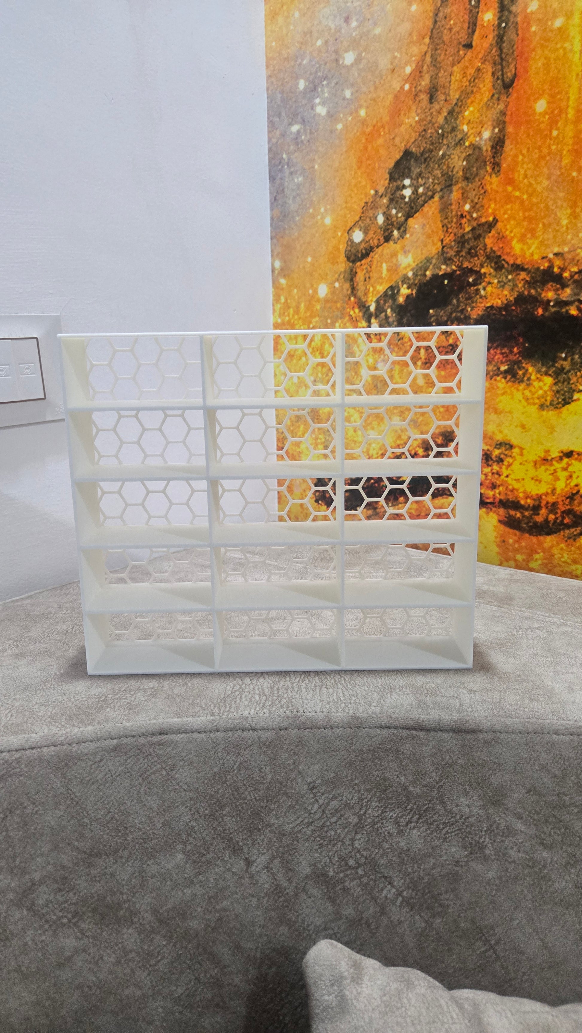 Showcase your collection in style with this premium Hex-Grid Display Stand!